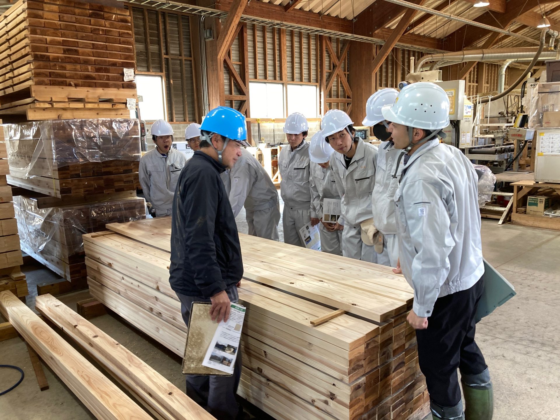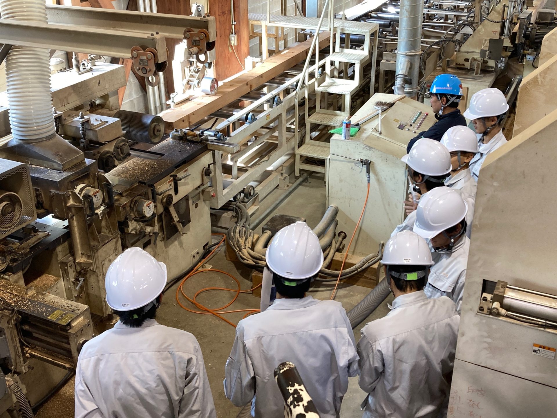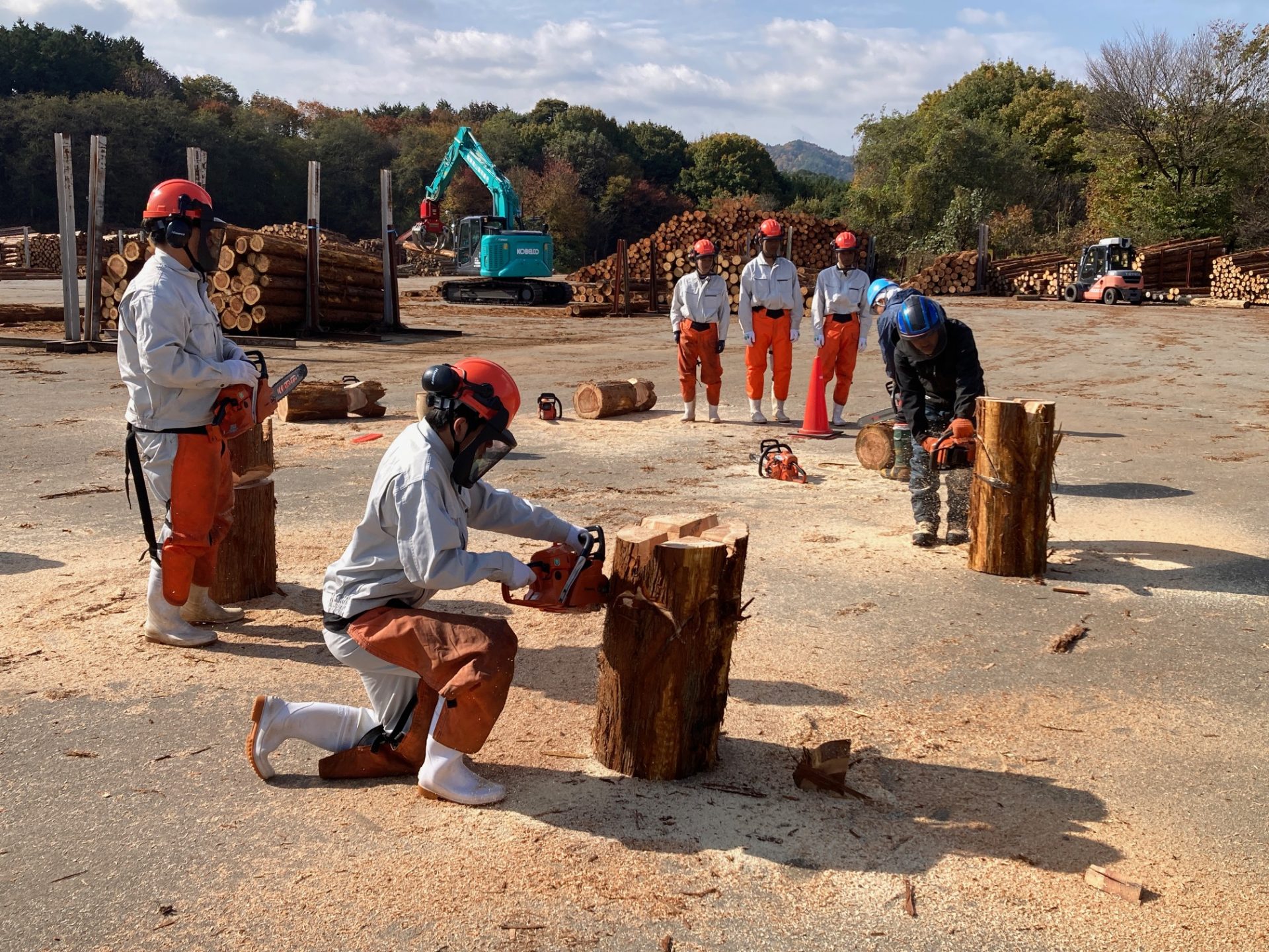 森林技術者から伐採、搬出、木材市場、製材について直に学んだり、チェーンソーによる伐採基礎や重機操作を林業の現場のプロから学びました。