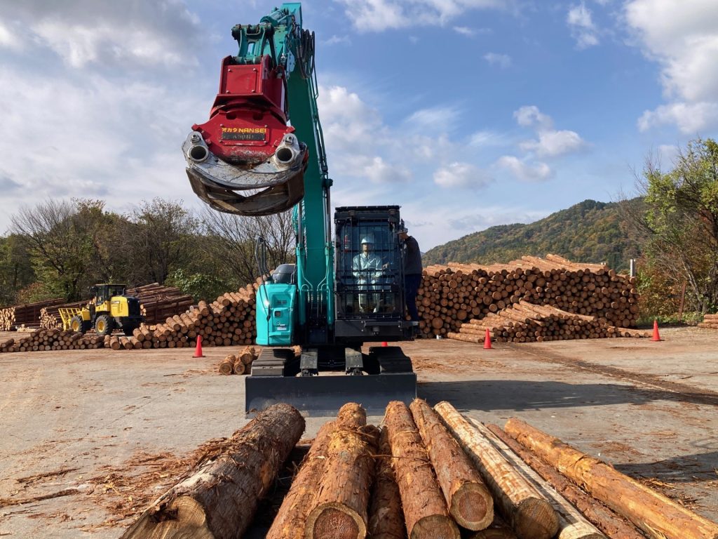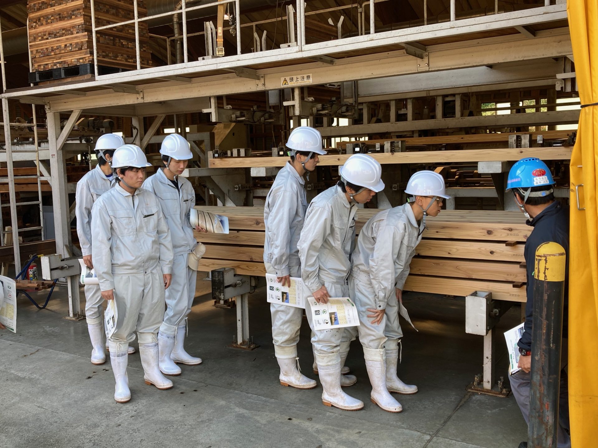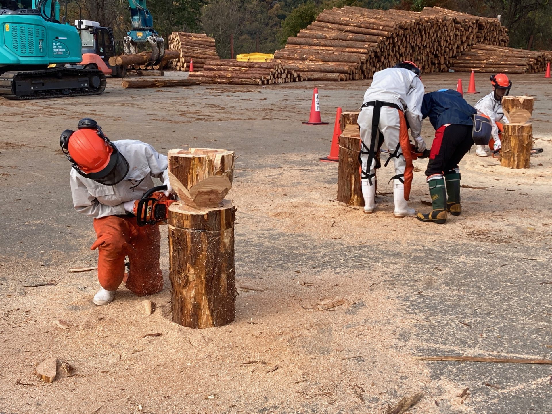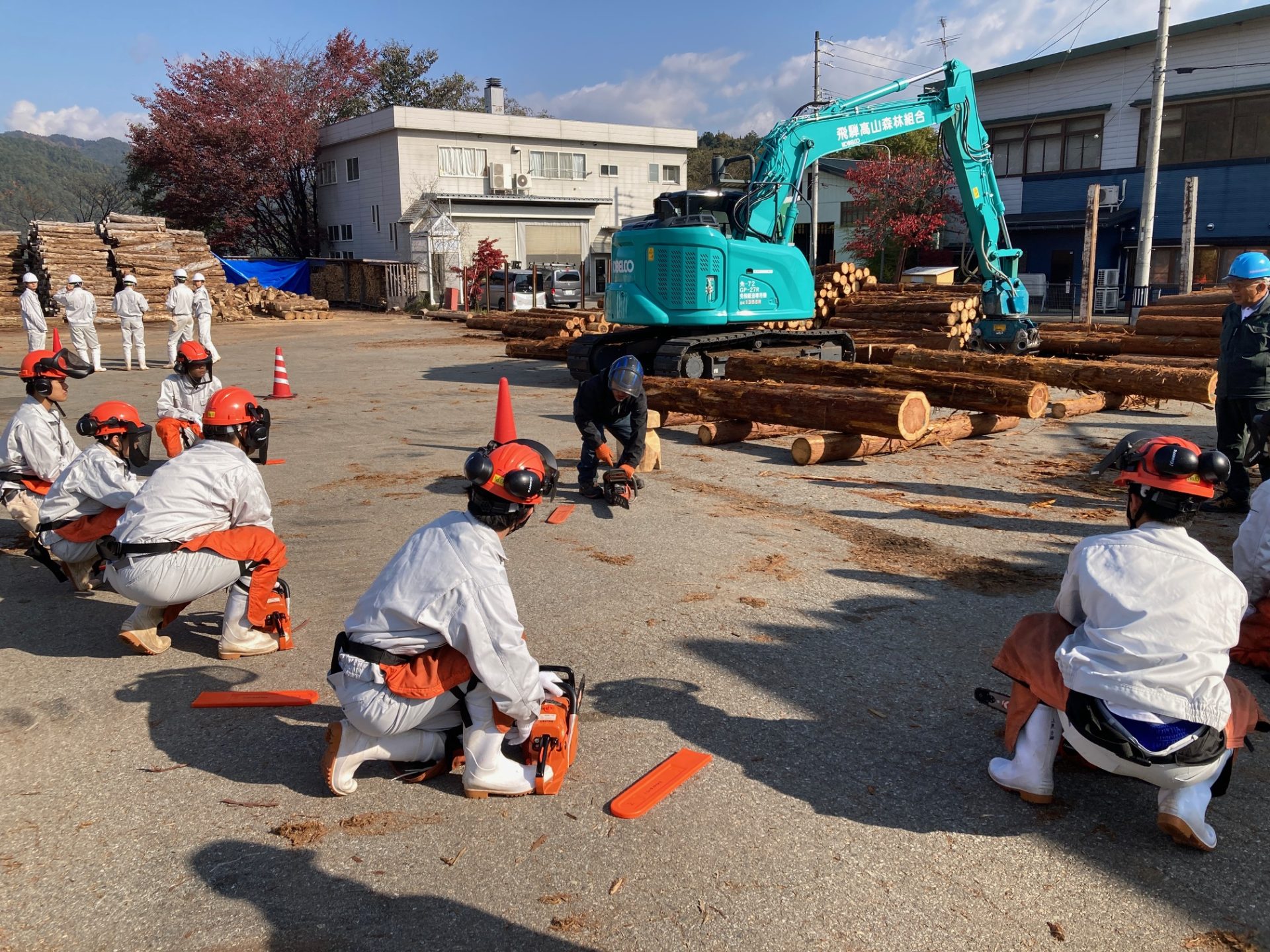 森林技術者から伐採、搬出、木材市場、製材について直に学んだり、チェーンソーによる伐採基礎や重機操作を林業の現場のプロから学びました。