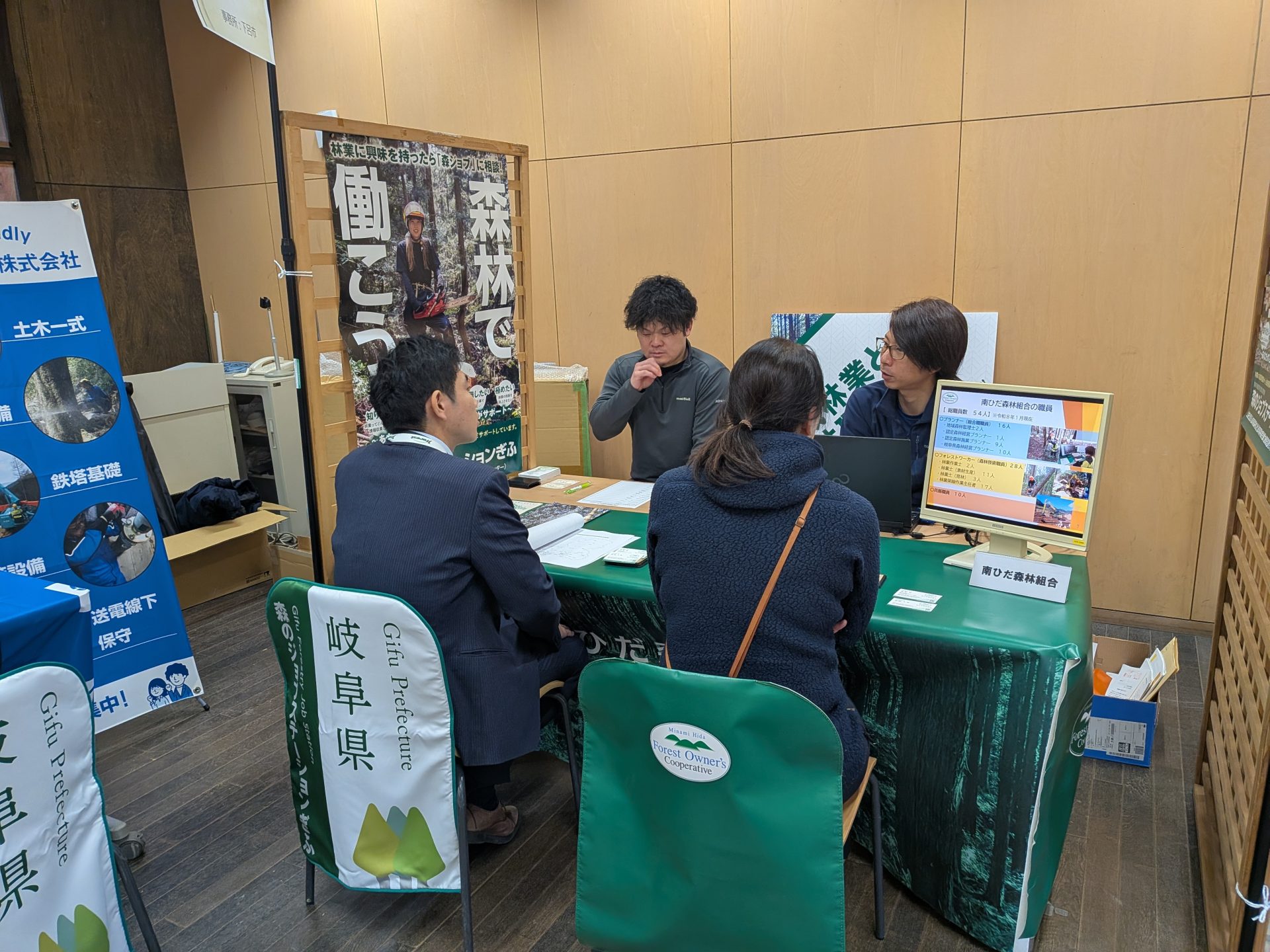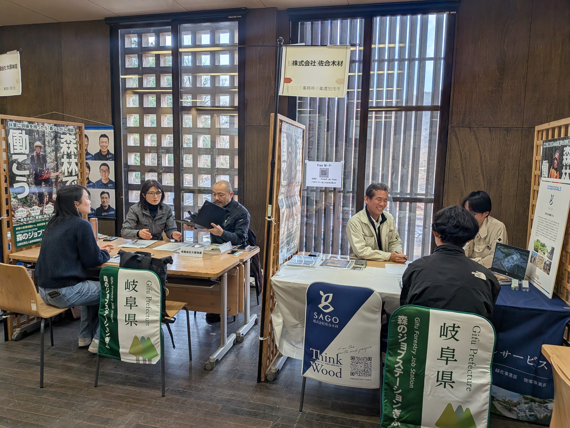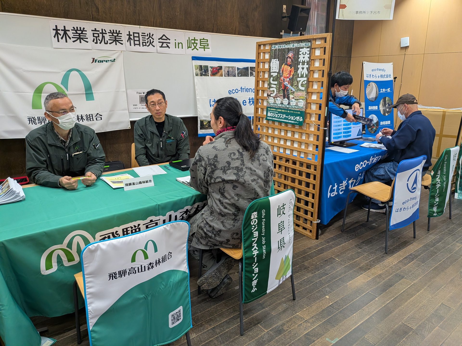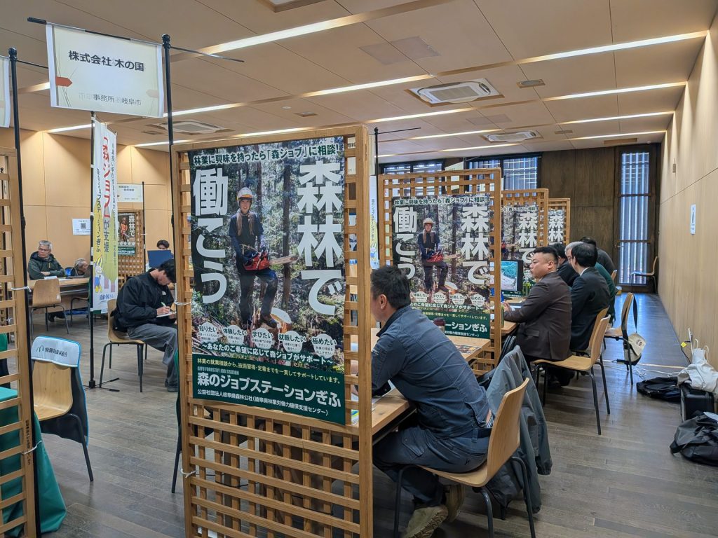 午後の就業相談会では、岐阜県内の林業事業体13社が参加。
