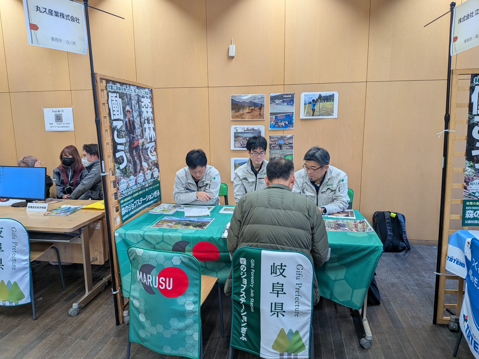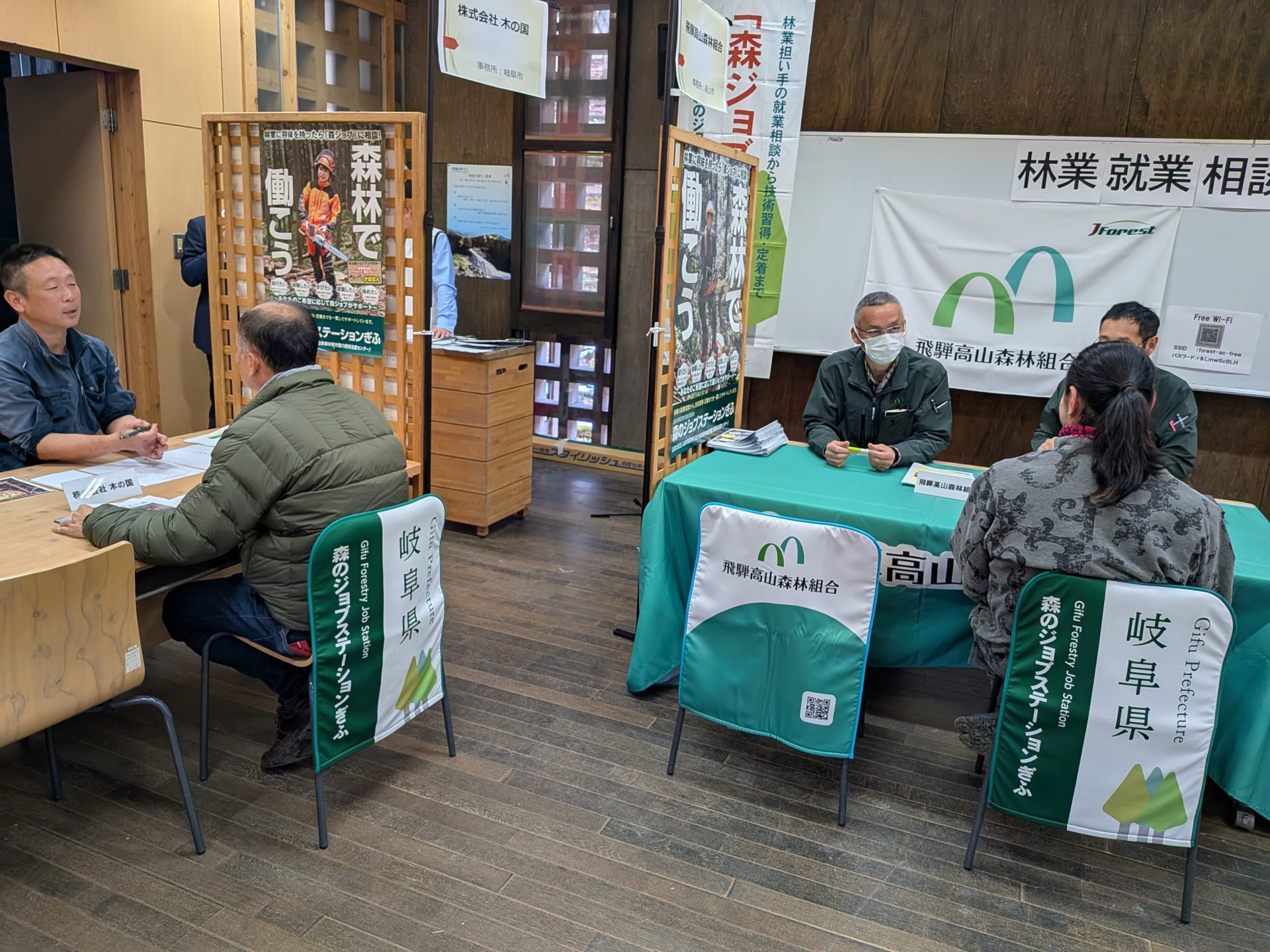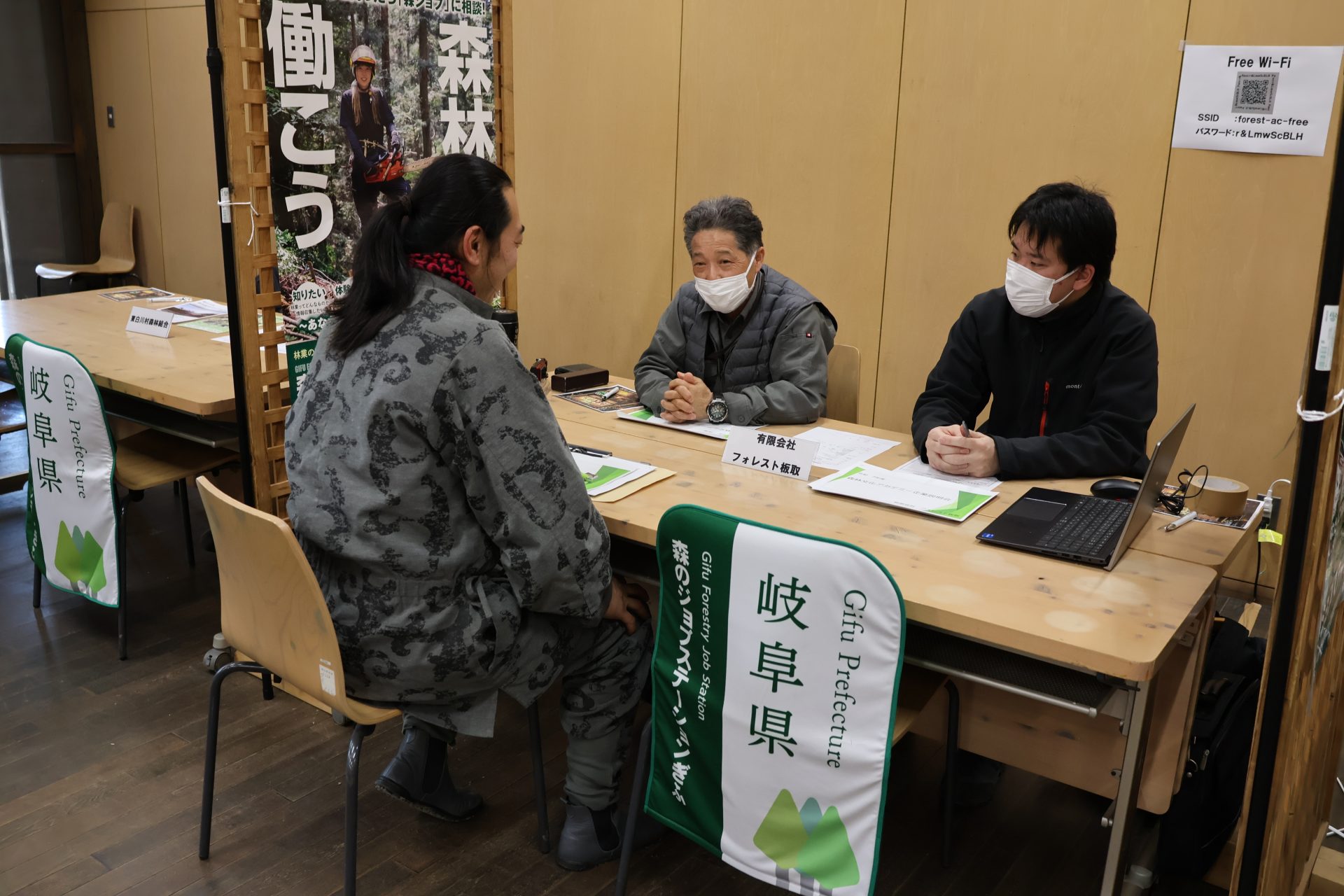 午後の就業相談会では、岐阜県内の林業事業体13社が参加。