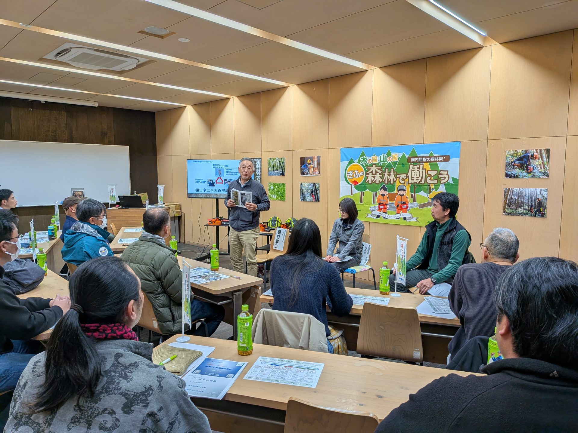 冬の澄んだ空気のなか、岐阜県立森林文化アカデミー テクニカルセンターA棟2階(美濃市曽代88)に各地から人が集まりました。