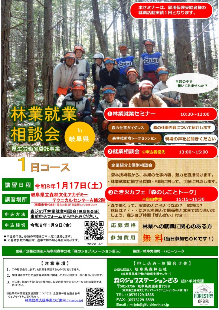 主 催:森のジョブステーションぎふ 担い手対策課(後援:岐阜労働局・ハローワーク)